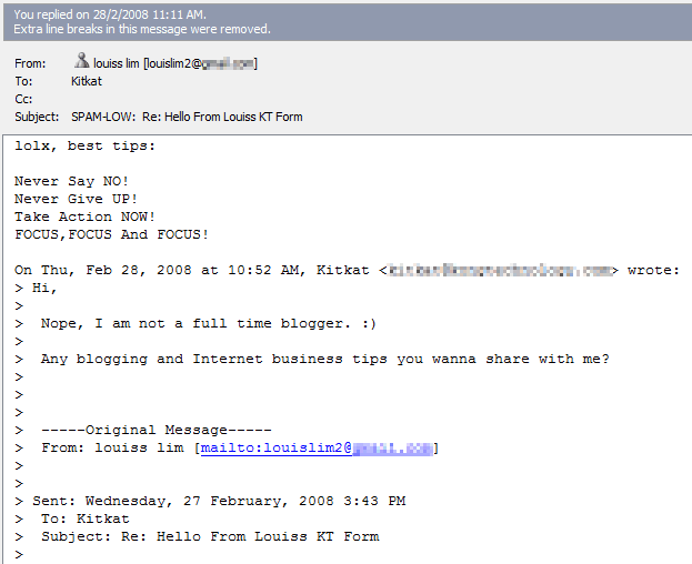 I didn’t personally meet LiewCF but have been reading his blog last time. I’m not one to say my English is good but me and LiewCF were about the same. His English not so good but now has improved. I’m also improving, right? Anyway, while everyone thought this I gave him the benefit of the doubt and true enough, he’s now a successful problogger in Malaysia.